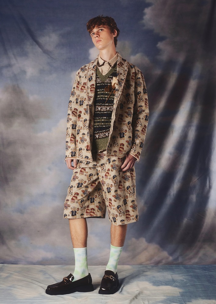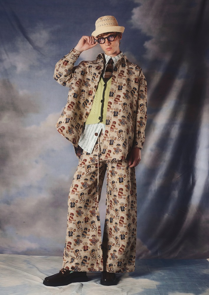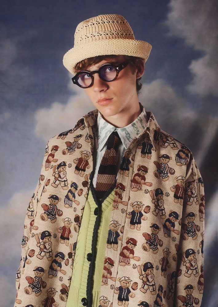 本コレクションは、Keyの祖父が身につけていたもの、そして好んでいたもの(例:野球、茶トラ猫、鳥)から着想を得ています。映画『ベンジャミン・バトン 数奇な人生』のように、祖父が若返り、自由と新しい視点をもって世界を再び探検する姿を想像しています。30年前に妻を亡くし、孤独を抱えながらも、そこに少しの悪戯心を添えて表現しました。