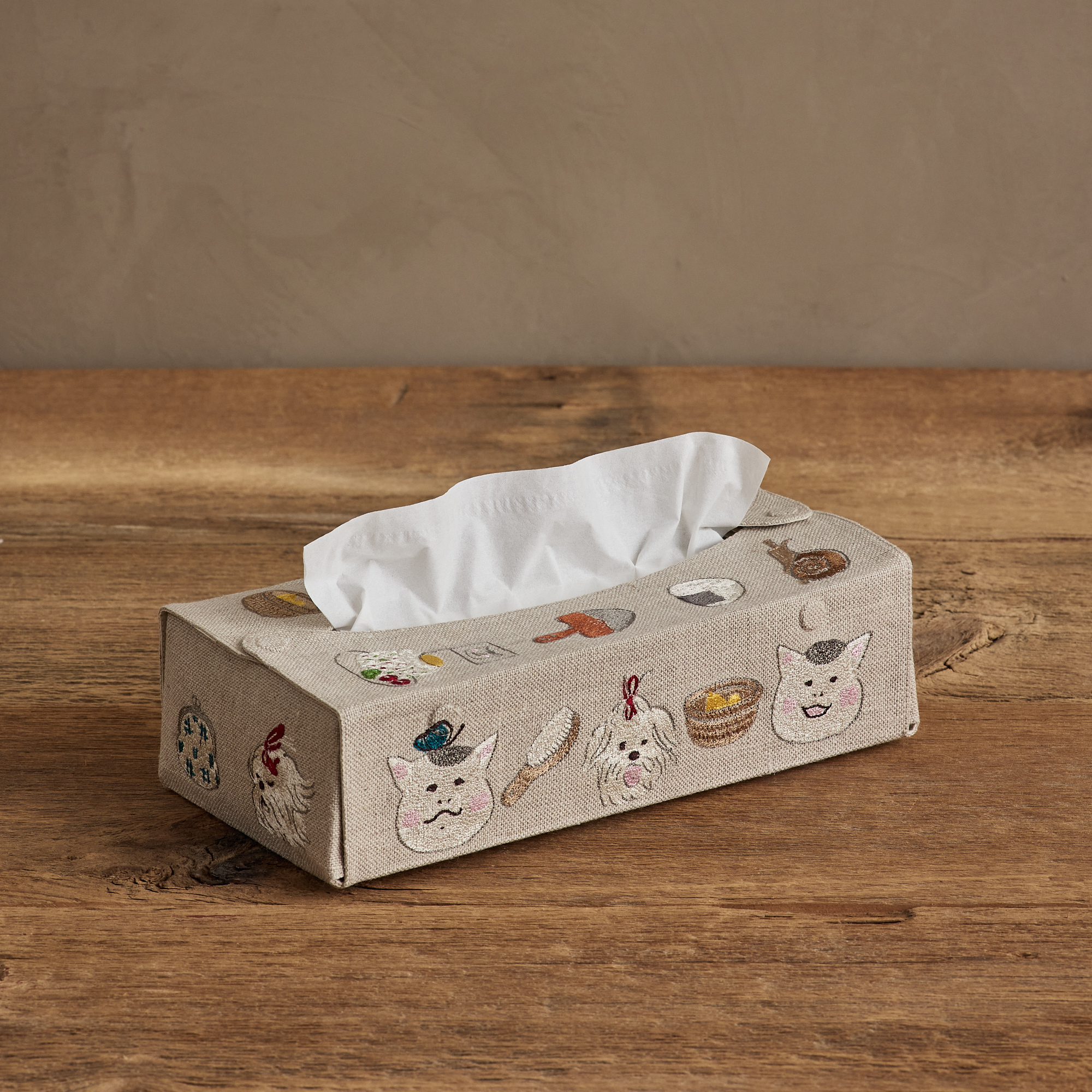 今回の新作には、ティッシュボックスカバーが登場。日本の一般的なティッシュボックスに対応したサイズ感で、日常の空間にささやかな楽しさを添えてくれるアイテム。毎日を少し楽しくしてくれる、猫村さんコラボレーションの新しい世界を、ぜひお楽しみください。
