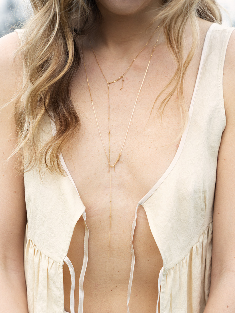 新たに加わる〈Charm Collection〉は、象徴的なモチーフを抽象的に表現したシリーズです。繊細なチェーンと小ぶりなチャームのバランスが、首元や手元にさりげないアクセントを添えます。単体での着用はもちろん、重ねづけによって印象の変化もお楽しみいただけます。