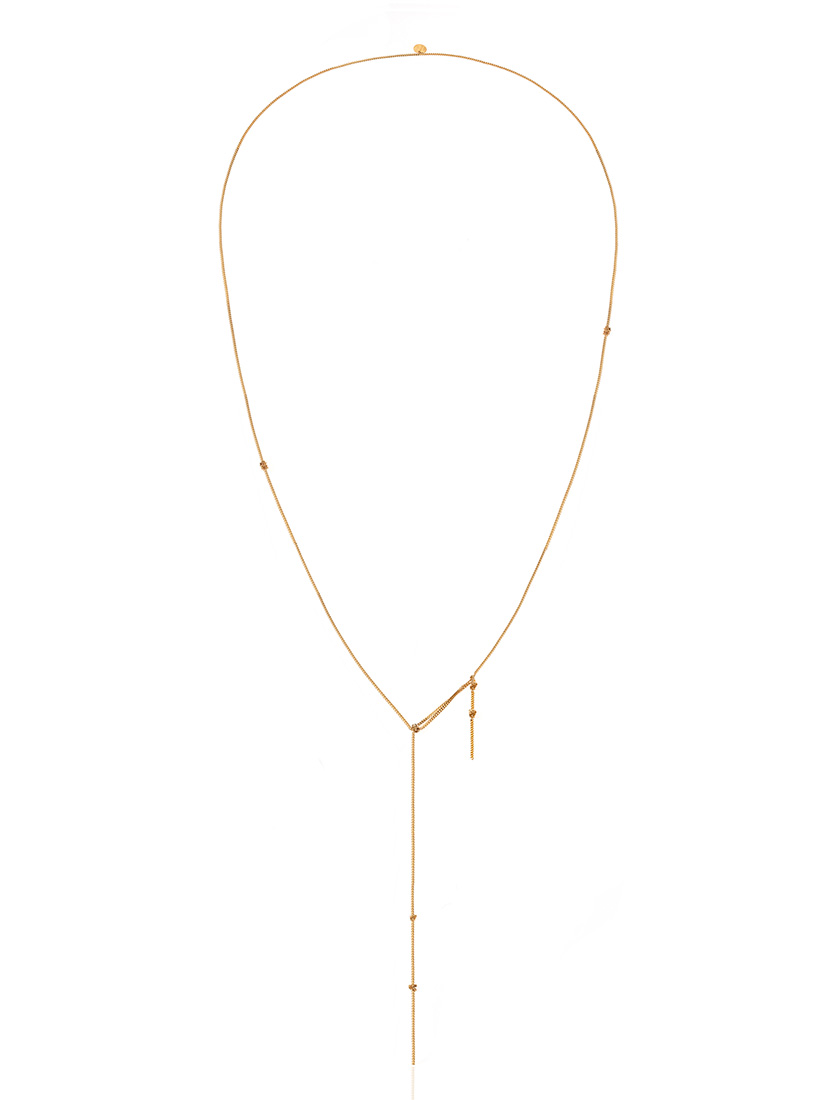 象徴的なノットモチーフを18Kゴールドで描いたネックレス。緊張と均衡が交差するミニマルな造形は、控えめでありながら明確な意志を感じさせます。日常からフォーマルまで幅広いシーンで確かな存在感を放つ一本です。