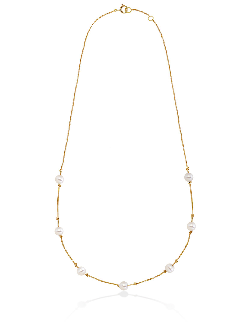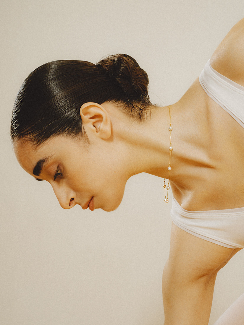7粒のアコヤパールを端正に配したステーションネックレス。クラシックな素材を現代的な構造で再解釈し、リズムある配置によって洗練された華やぎを演出します。静かな品格を備えたアイコニックなデザインです。