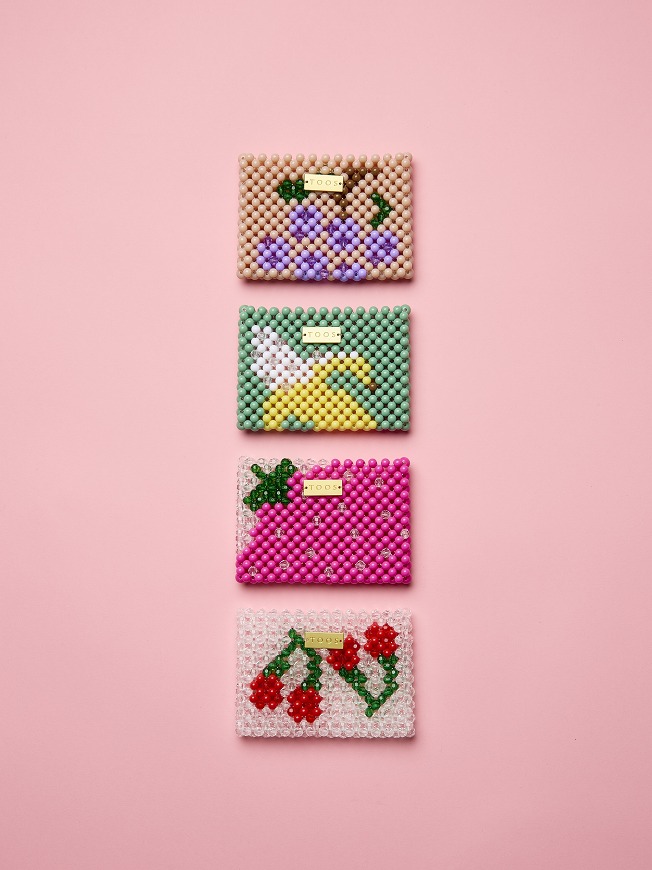 ひと粒ずつ丁寧に編み上げられたフォルムは、どこかノスタルジックでありながら、日常にさりげない遊び心を添えてくれます。ポーチやキーチャームなど、実用性と装飾性をあわせ持つラインナップをご用意。バッグの中や手元に、小さな彩りを添えるアイテムとしておすすめです。日々にそっと寄り添うTOOSのコレクションを、店頭にてお楽しみください。