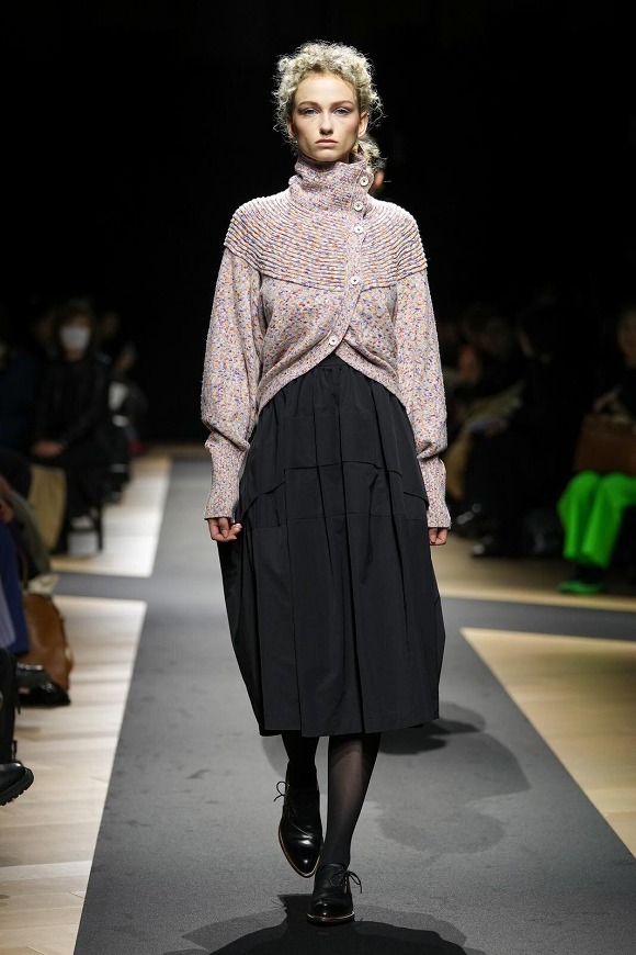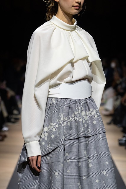 襟元やアームホールのタック、ギャザーを贅沢に用いたドレス、立体的なディテールなど、身体の動きと共鳴するデザインが特徴です。また、パンツスタイルを軸に構成された本コレクションでは、クラシックからオーバーサイズまで幅広いシルエットを展開。ウールギャバジンやジャカード、サテンといった素材は、軽やかさと防寒性を兼ね備え、これまでよりも軽量化された仕上がりとなっています。一過性ではなく、長く寄り添う服を目指して。見えない部分にまで宿る仕立ての美しさと着心地を、ぜひ店頭でご体感ください。