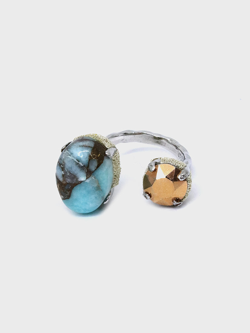 サイドから天然石とスワロフスキーがきらりと見えるフィフスリングがオンラインショップに新入荷いたしました。