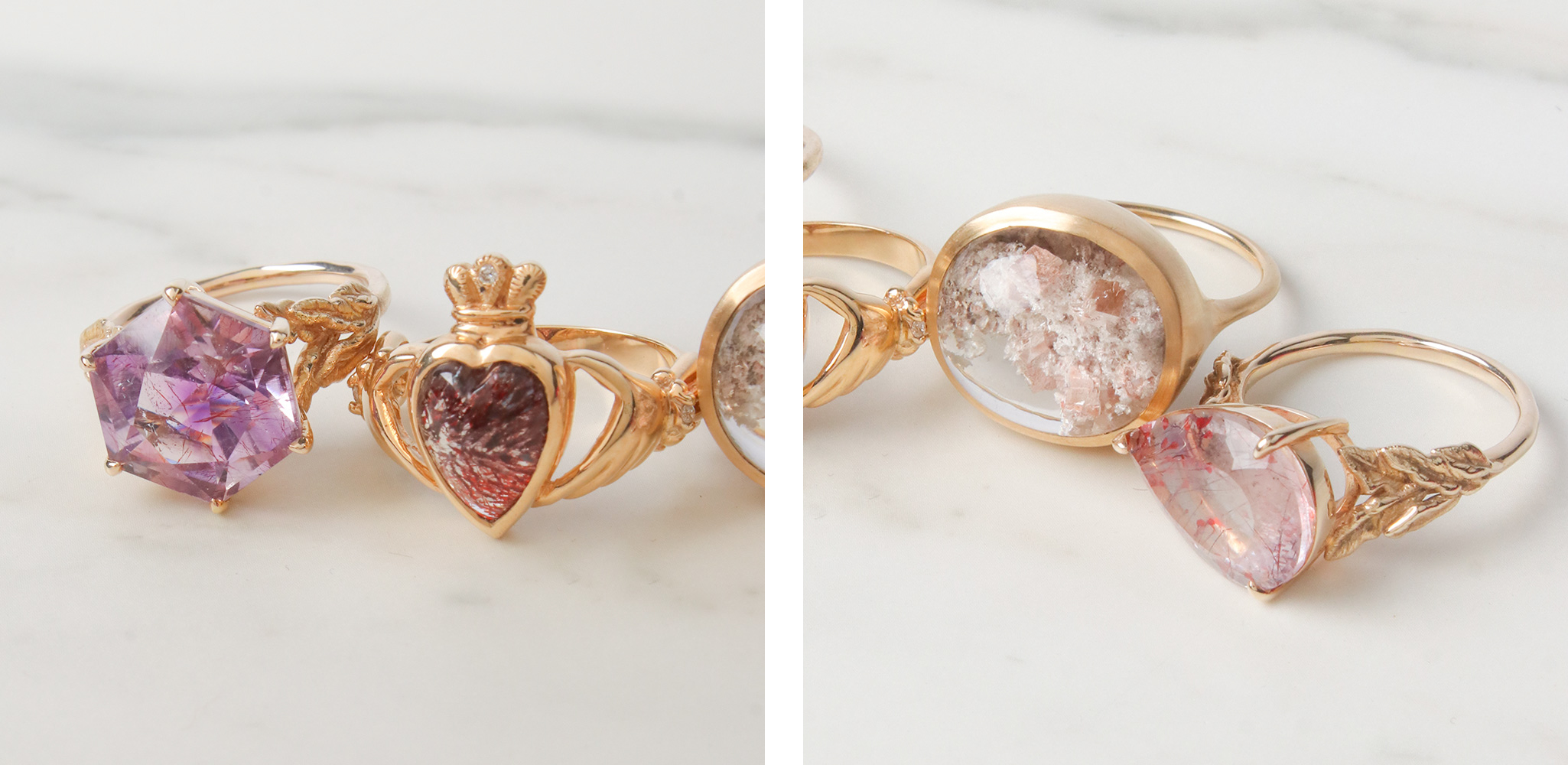 【一点もの】《MOEMI SUGIMURA》リング カルサイトインガーデンクォーツ
