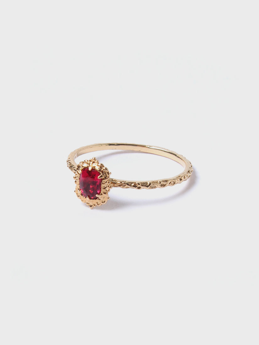 デザイナーは緑川衛。主にK14ゴールドを使用したリングが特徴のブランド。特徴的な石枠飾りにデザイナーのセレクトした個性的で美しい色石が魅力です。数種類のデザインからなるアームは華奢さと繊細さとともに,女性らしいエレガンスを感じさせてくれます。シンプルに1本でも,重ね付けもお楽しみ頂けます。