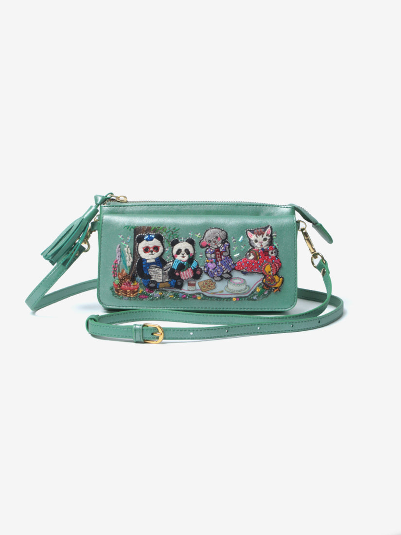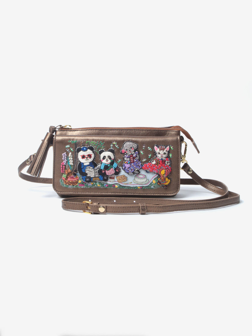 ファンタジックでユーモラスな世界観を手刺繍により表現するブランド"tamaoworld"(タマオワールド)より、新作のお財布ポシェットが入荷いたしました。パンダの親子とお友達のプードル、ネコ、ひよこがピクニックをしている愛らしいデザインの「Picnic」。イギリスの画家ルイス・ウェインの描く猫愛たっぷりの絵画をモチーフとした「Louis Wain Kittens」の2種類が登場。