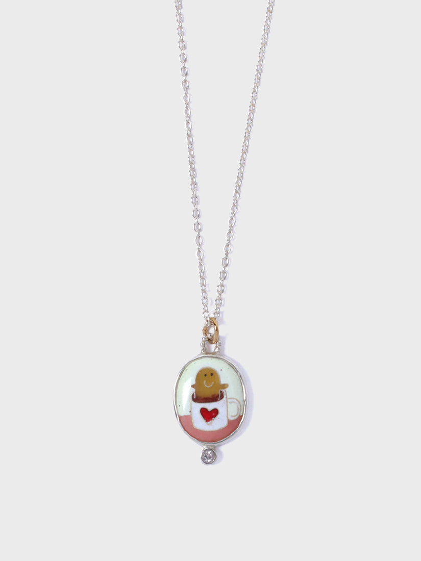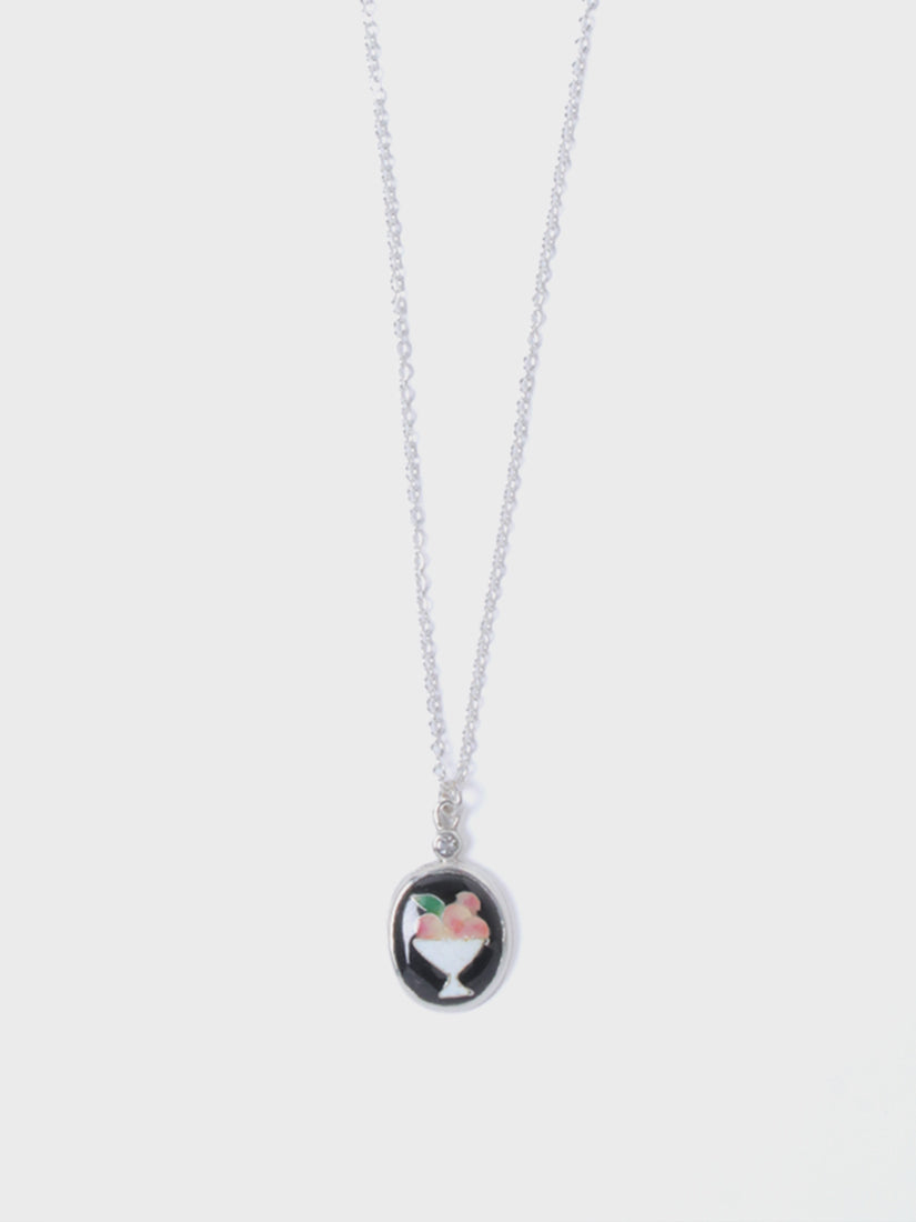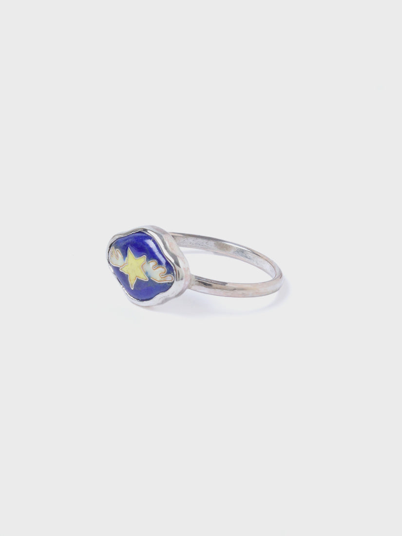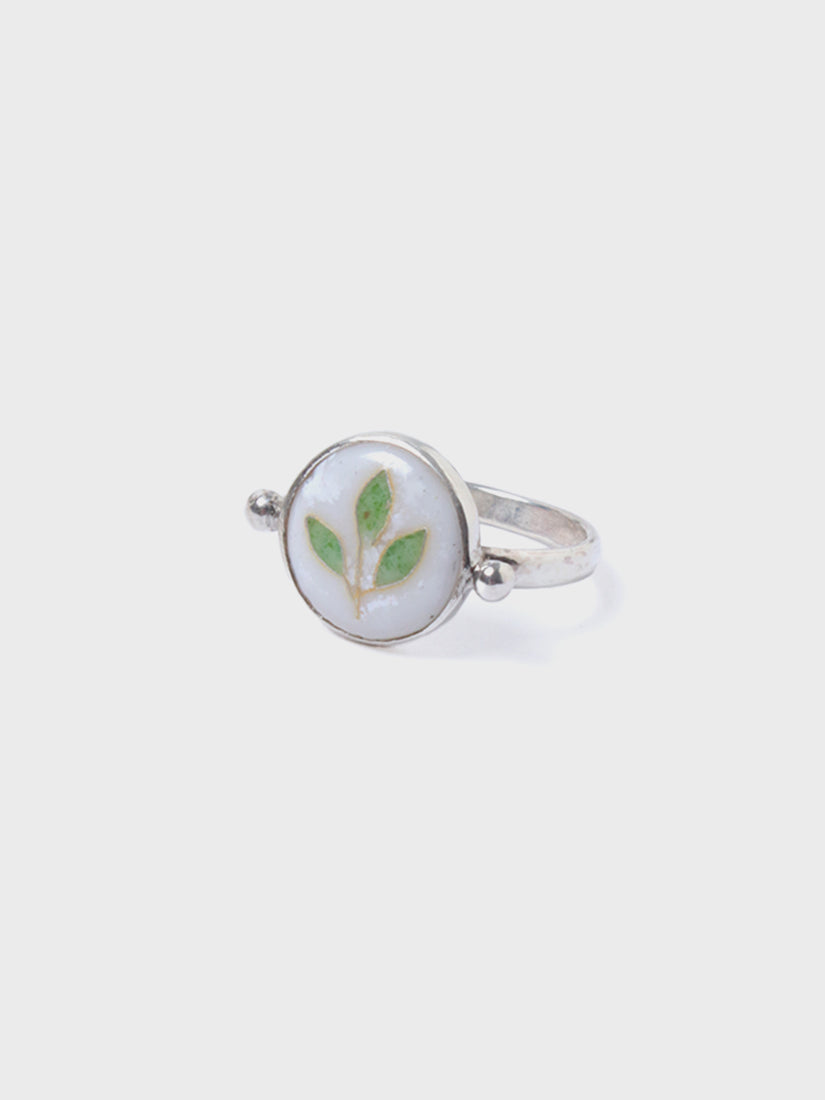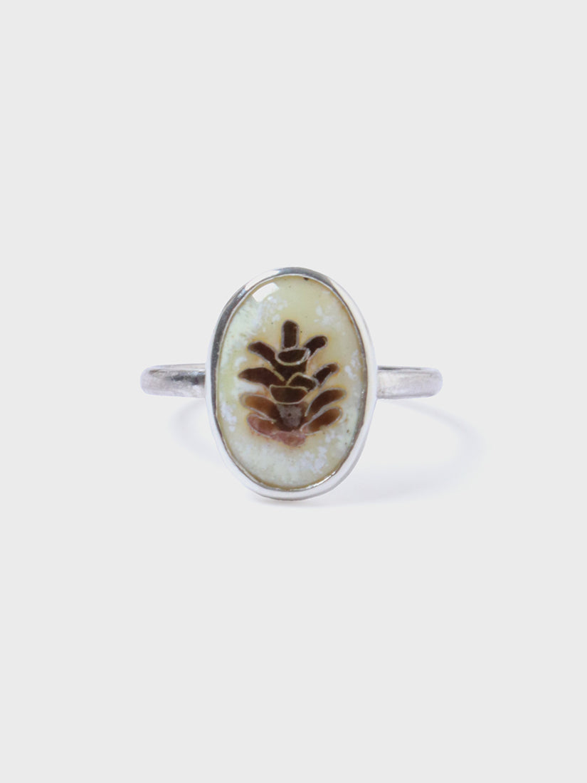 enamel: 銀線をピンセットで曲げて絵柄を描き、その輪郭の中に七宝釉薬(ガラスの粉)を少量ずつ乗せて、700℃前後の釜で焼成します。 透明、不透明の釉薬を重ねては焼く工程を10~20回程繰り返すことで、自然物のような優しく繊細な色合いを生み出しています。