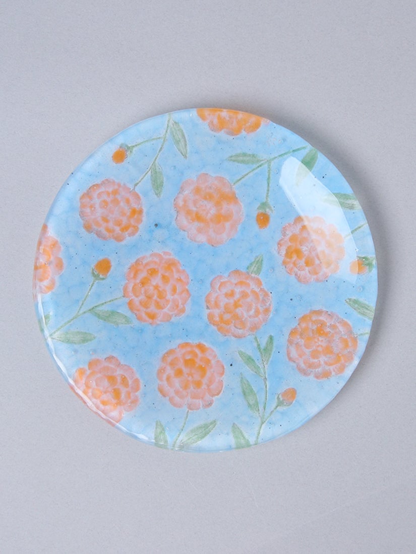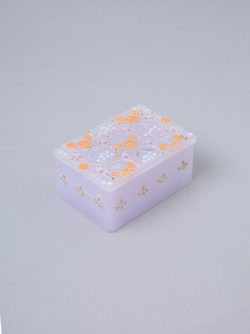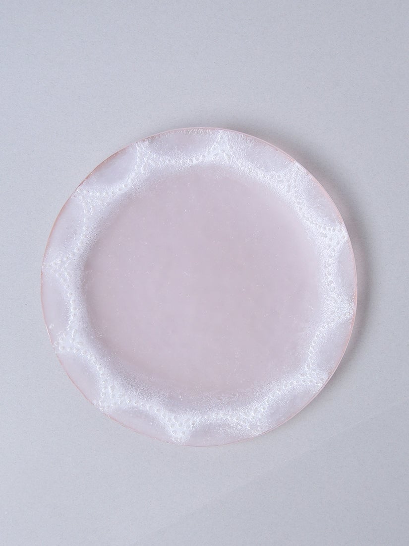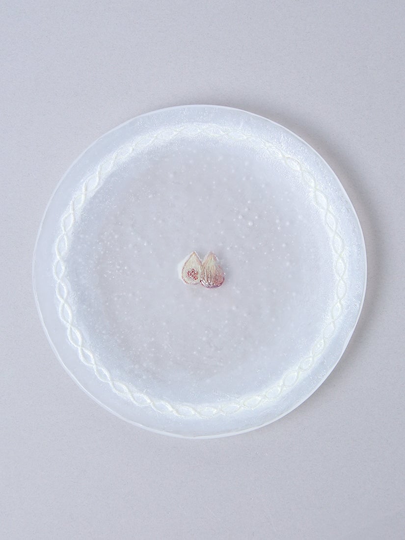 パートドヴェールという、吹きガラスが開発される以前に用いられた技法で作品制作してます。原型を製作し、石膏型にレリーフを彫刻、一つ一つ手作業で製作されるため、さまざまな技法の中でも作家の個性が強く表れます。 砂糖菓子のような柔らかい輝き、奥行きのある色のグラデーションや素朴な手彫りのレリーフ、涼やかで洗練されたガラスのイメージとは異なる魅力を楽しんで 頂けると幸いです 。