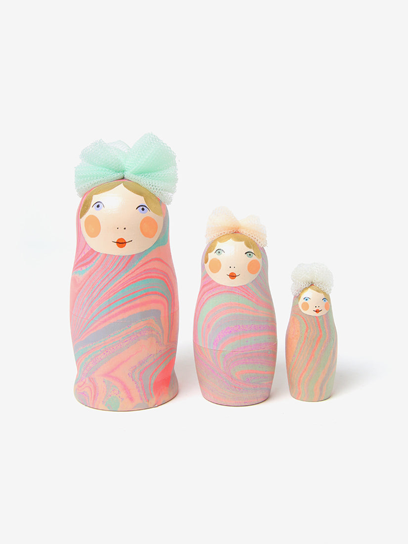 マトリョーシカ作家"murmur in the Soda"(マーマーインザソーダ)。一点ずつ絵付けがほどこされ、伝統的なロシアのマトリョーシカとは一味ちがうほっこりとした愛らしいお顔が特徴です。この度マトリョーシカの他、小物入れやキーホルダー等アイテム豊富にオンラインストアへ入荷いたしました。マトリョーシカは「幸せを運ぶ人形」とも言われ、縁起物としてギフトにもおすすめです。