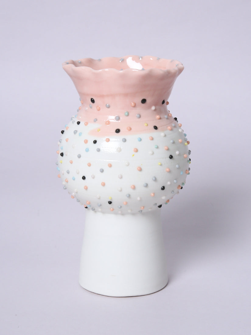 雨粒のような立体的なドットが装飾されたフラワーベース等、パステルでストーリー性のある作品を制作する陶芸作家”sato ootsuki”(大槻智子)。今回の作品のテーマは"季節が巡る中の、春の行進"。花が咲き始め、動物や植物が行進を始めた様に外が賑やかになっていく、そんな春を題材にした作品が到着いたしました。日々の暮らしに、春のリズムをそっと添えてくれる作品たちをぜひこの機会にご覧ください。