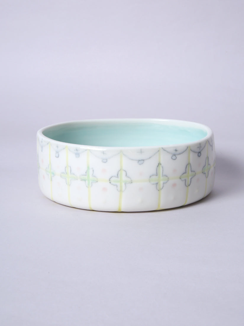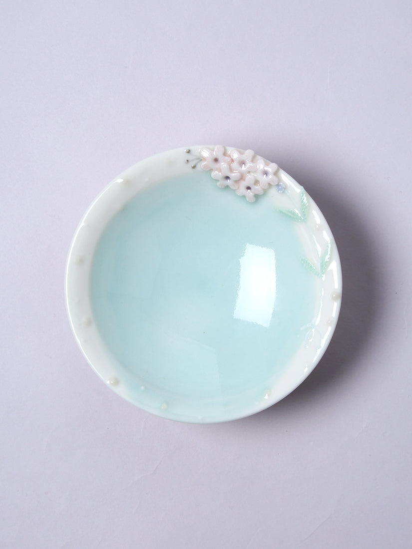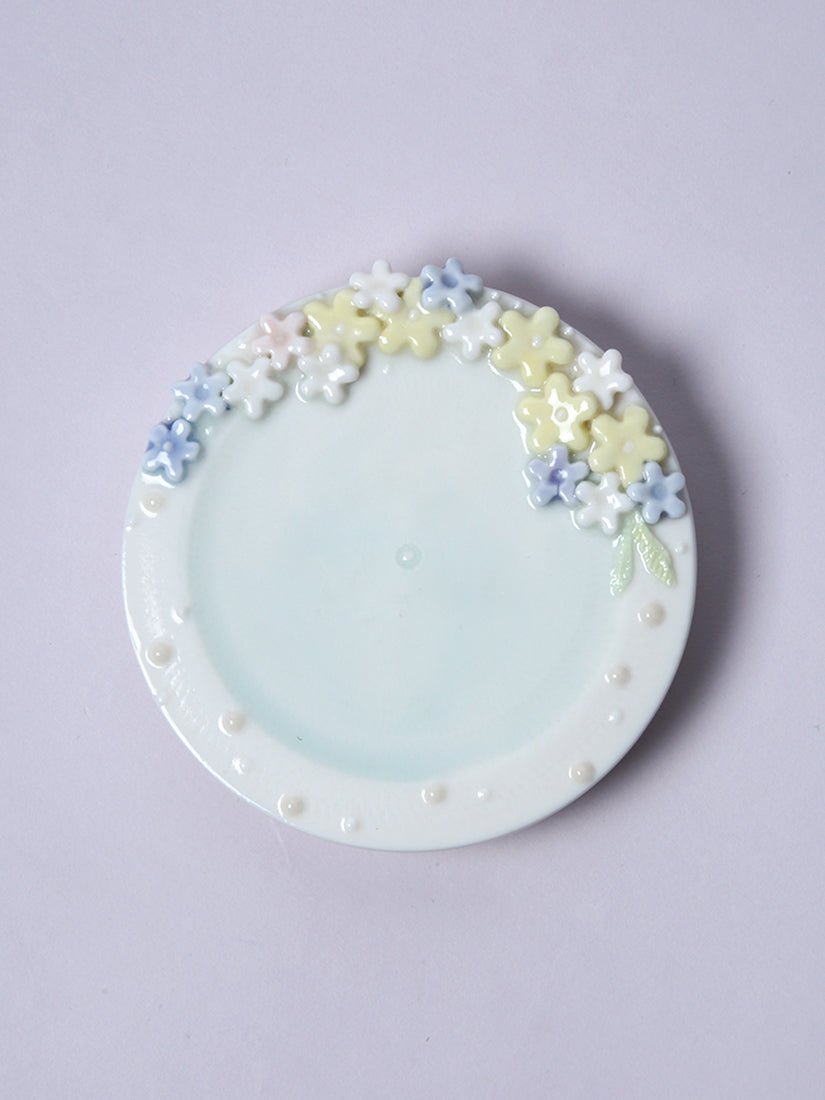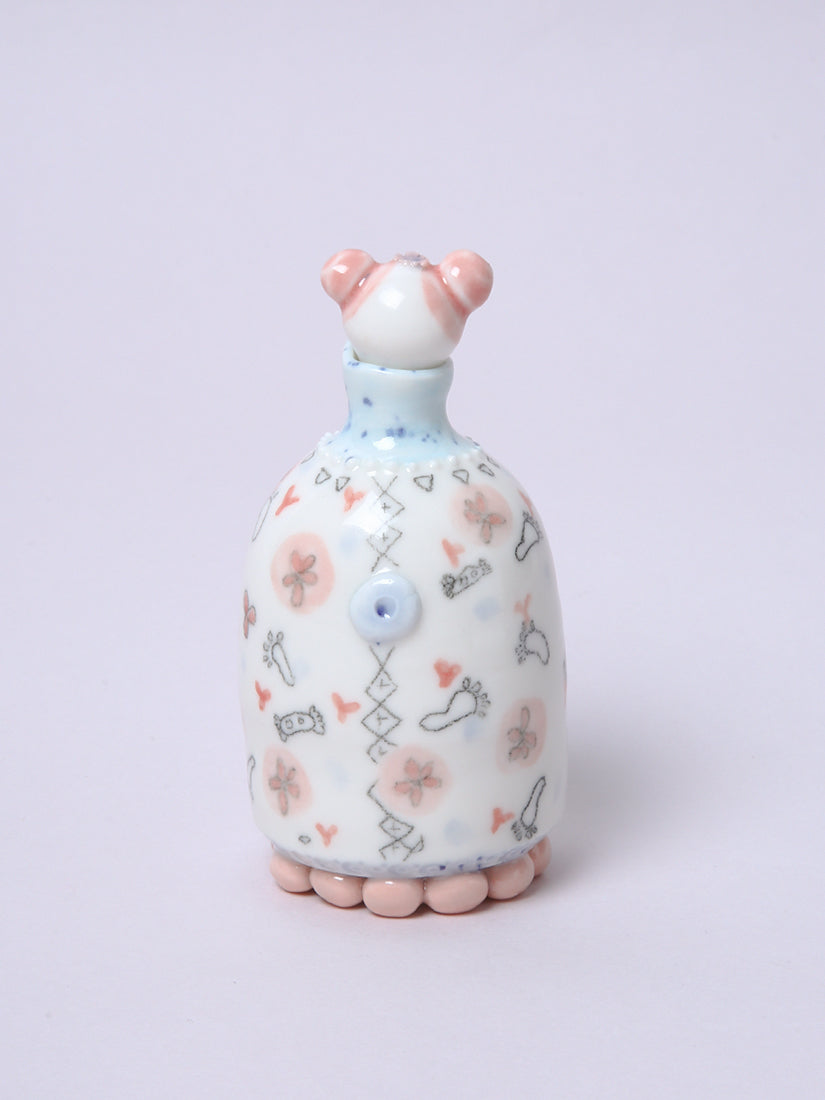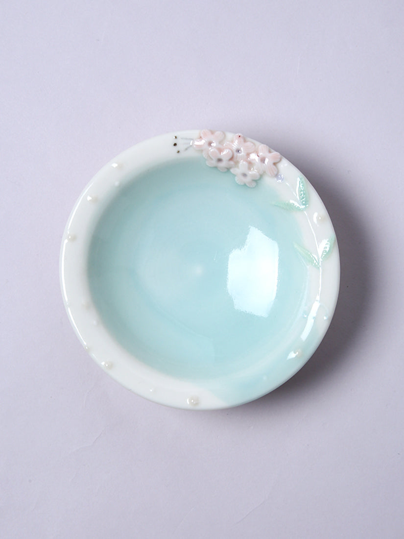 2009年陶芸アシスタントを経て、独立。愛知県常滑にて作陶。2012年神奈川県へ移窯。 様々な種類の土と素材を組み合わせ、雨粒の様なドット、動植物をモチーフに装飾がされた陶器を制作。 雨の時の霞んだ色をパステルで表現しています。 土は、記憶をする性質があり、それに自身の幼少期からの記憶や好きを重ね日々制作しています。
