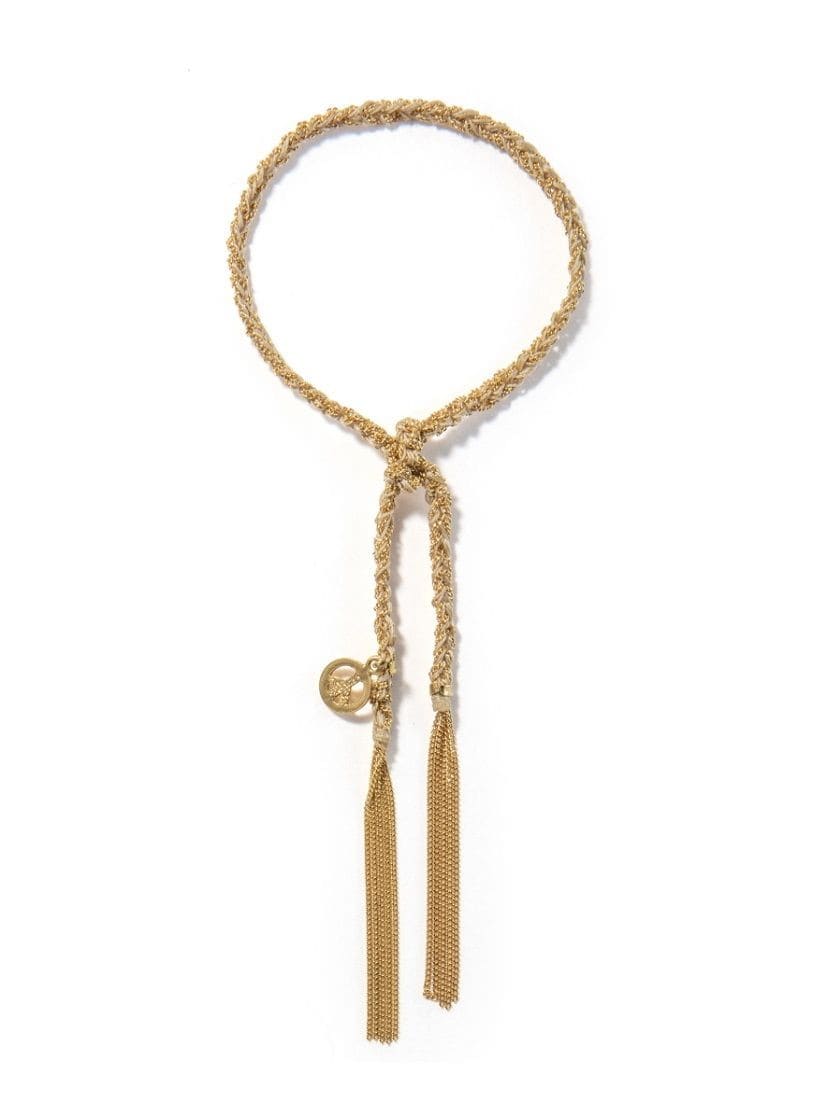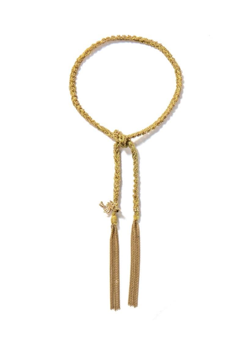 18Kゴールドチェーンと濃淡のことなるグレーのシルクコードを編み上げた大人っぽさのあるLUCKY
